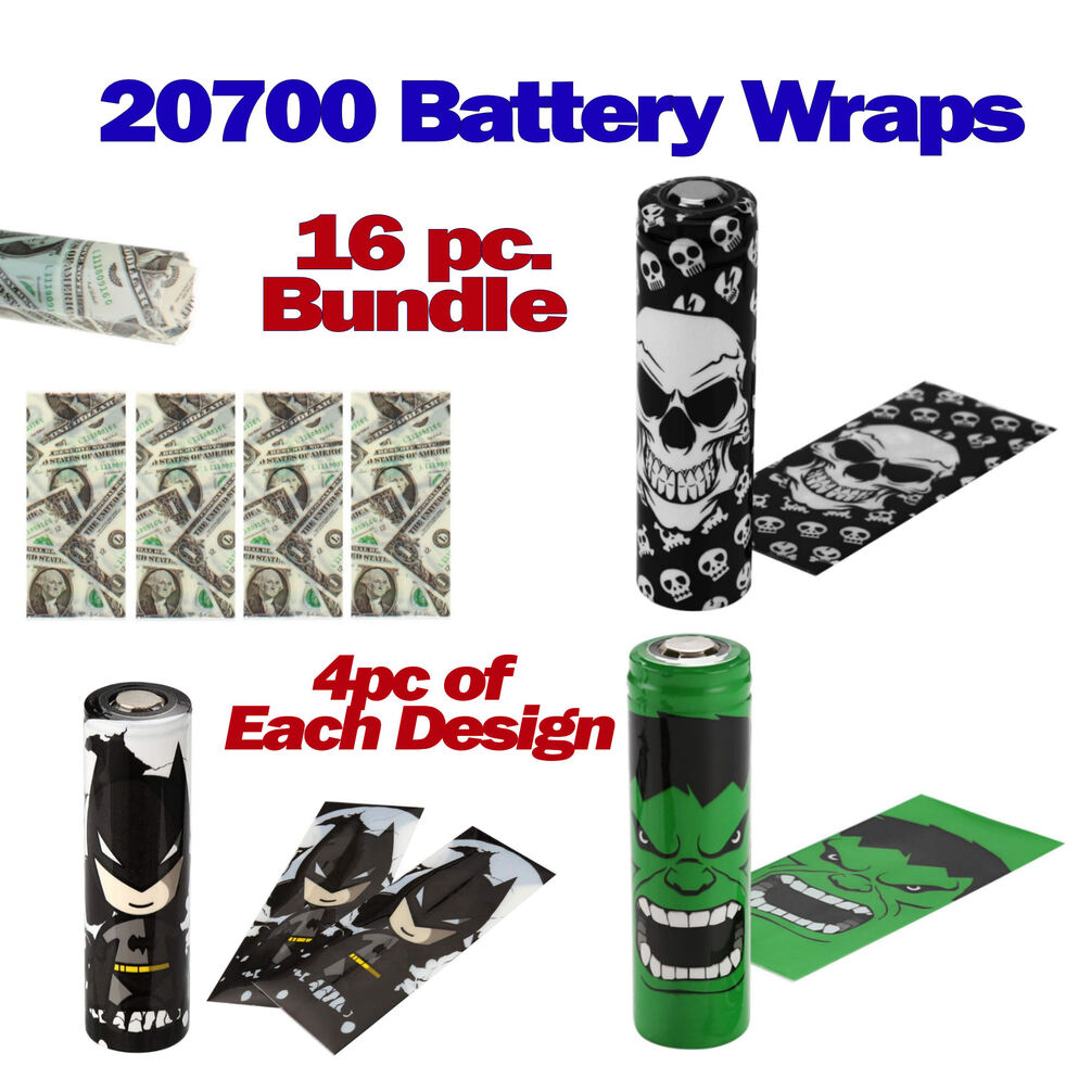 20700 Battery Wraps - Get 4 Pieces of all 4 Designs - 16pc BUNDLE w/ Free Insulators